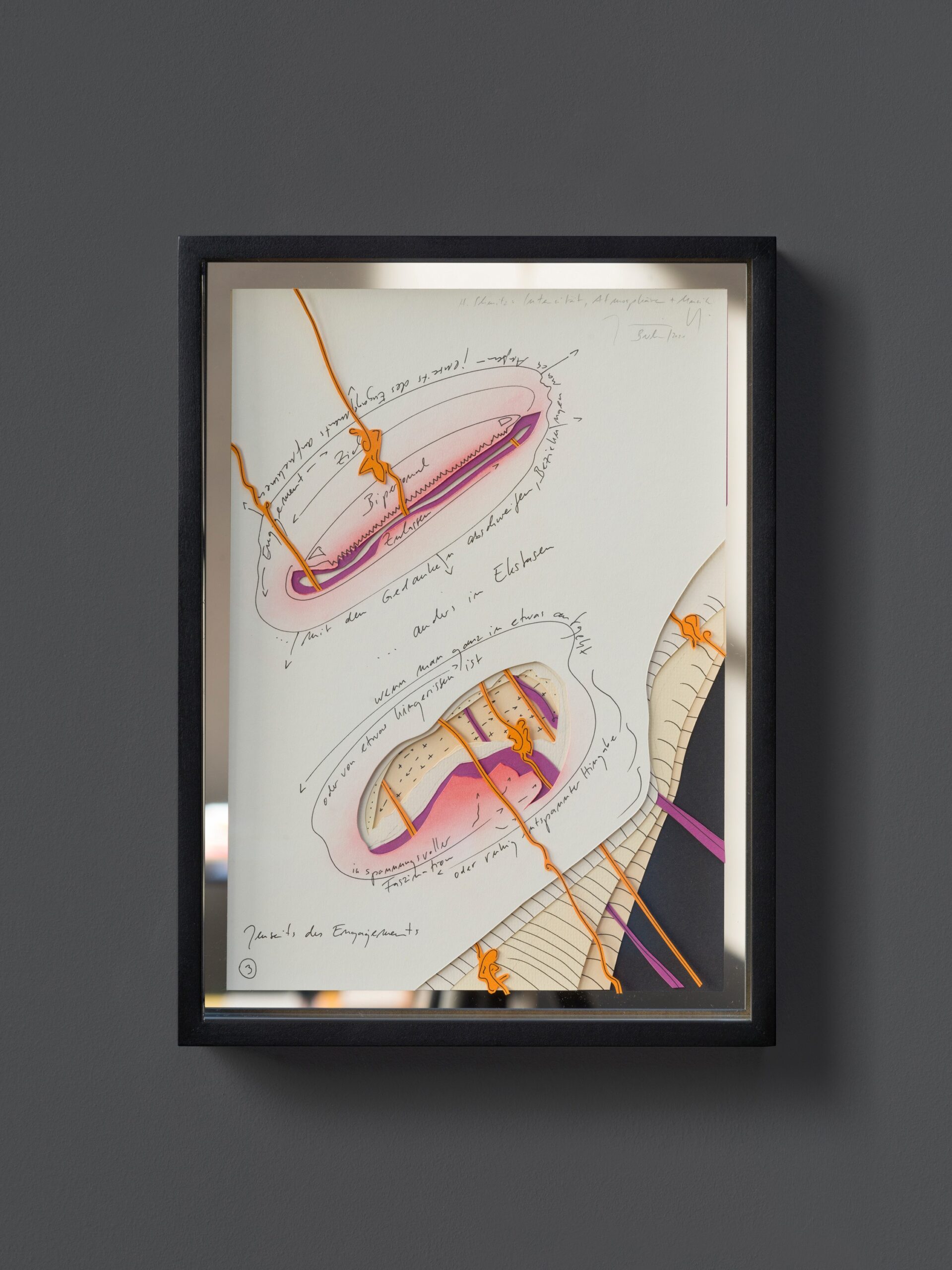 Ink and graphite on paper, mounted on mirror glass, artist's frame