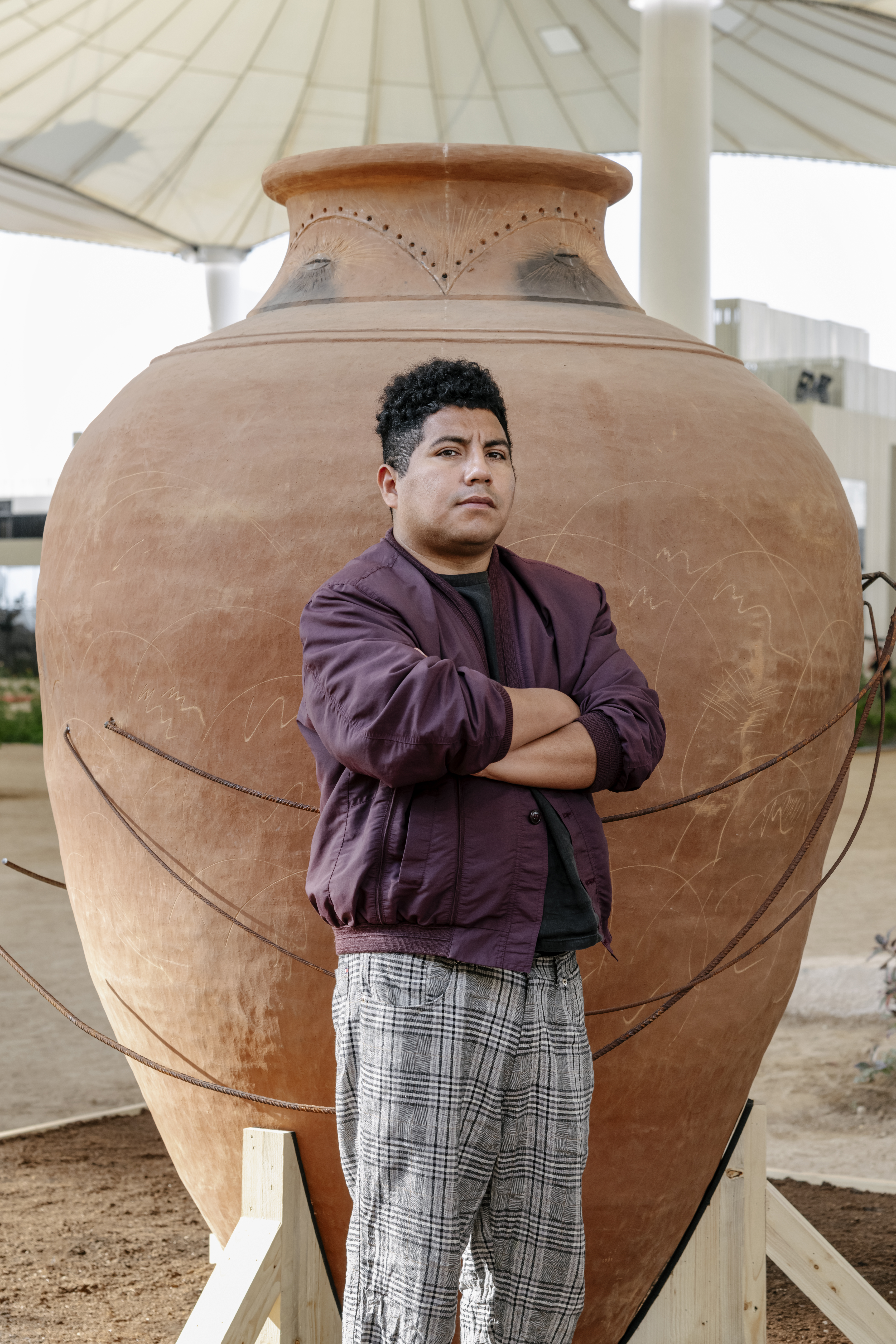 L’opera di Chaile si popola di presenze ibride: figure antropomorfe in creta, con lunghe gambe metalliche e corpi di uova o mattoni, interagiscono con elementi scultorei riconducibili a un accampamento precario, evocando una condizione di sopravvivenza post-apocalittica. In queste forme si depositano stratificazioni culturali e tracce di memorie individuali e collettive, che rimandano a narrazioni ancestrali e a processi di trasmissione culturale.