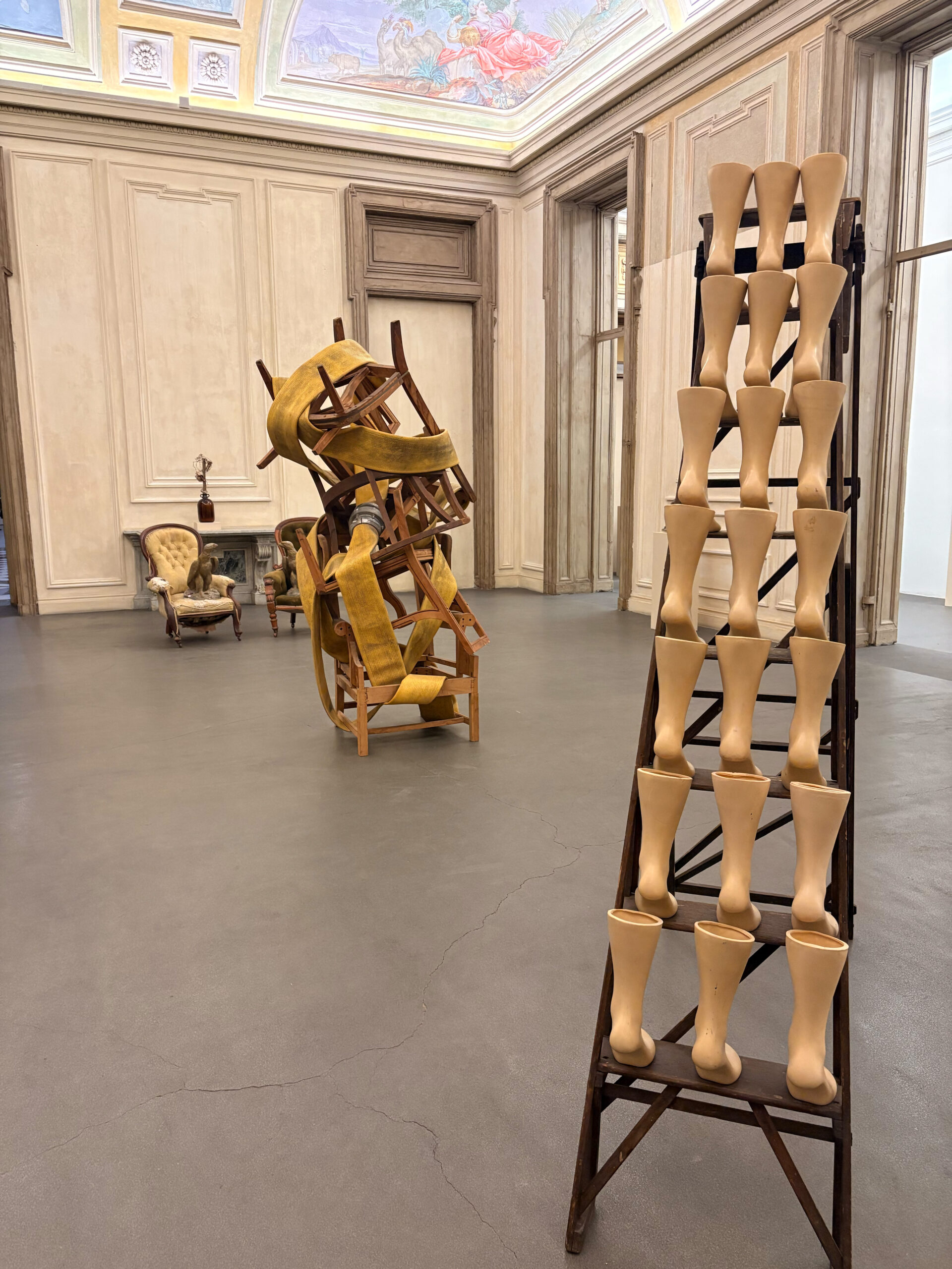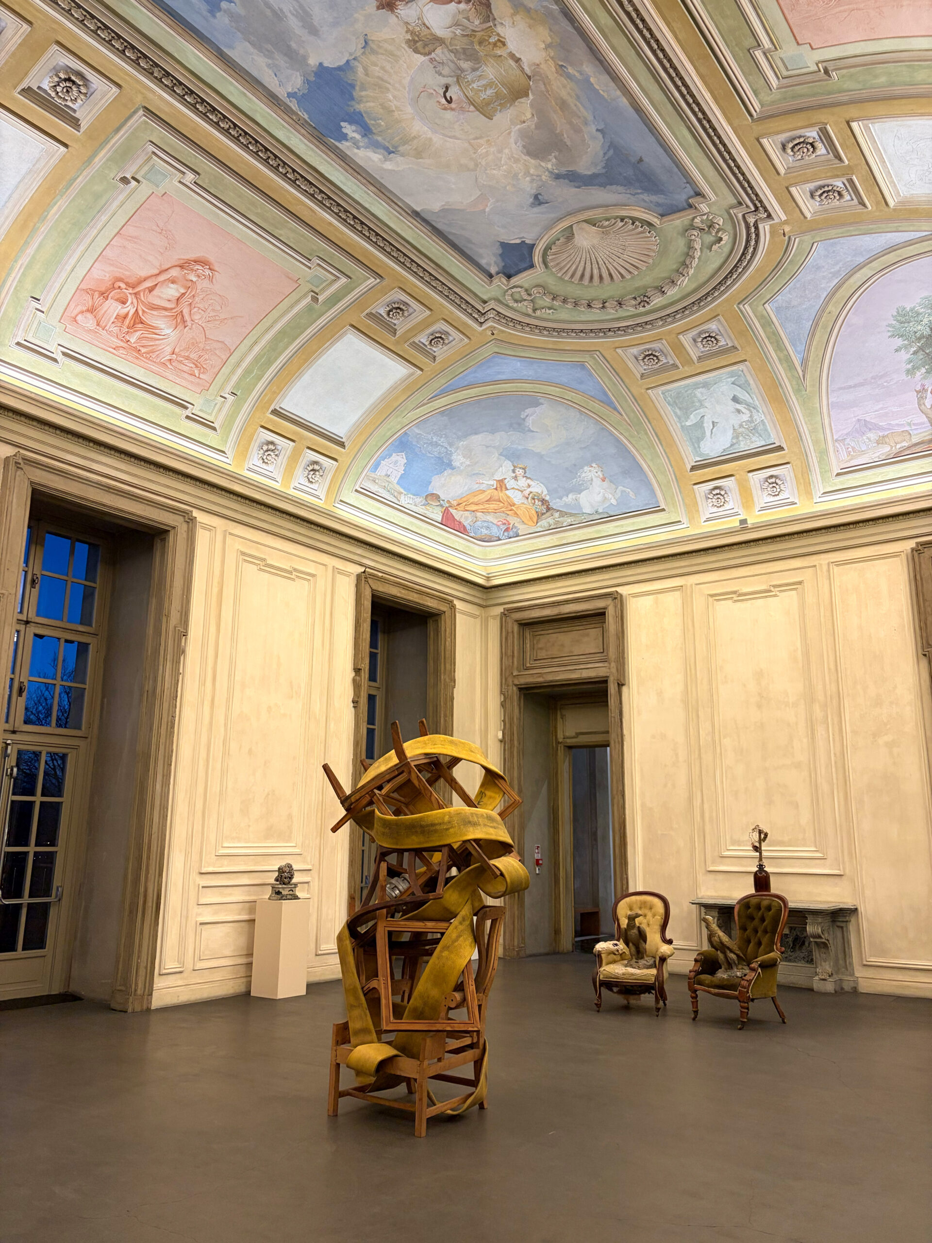 Questo primo ambiente immersivo è frutto del lavoro di Gabriel Chaile (San Miguel de Tucumán, Argentina, 1985), uno dei tre artisti coinvolti nella seconda edizione di Inserzioni, a cura di Francesco Manacorda e visitabile fino al 23 agosto. Il programma semestrale di commissioni coinvolge anche Lonnie Holley e Huda Takriti, quest’ultima con un intervento a cura di Linda Fossati. Gli artisti sono chiamati a partecipare attivamente alla scrittura della storia espositiva del Museo, facendo dialogare le proprie pratiche con le sale auliche e attivando relazioni inedite tra opere, spazio e memoria.